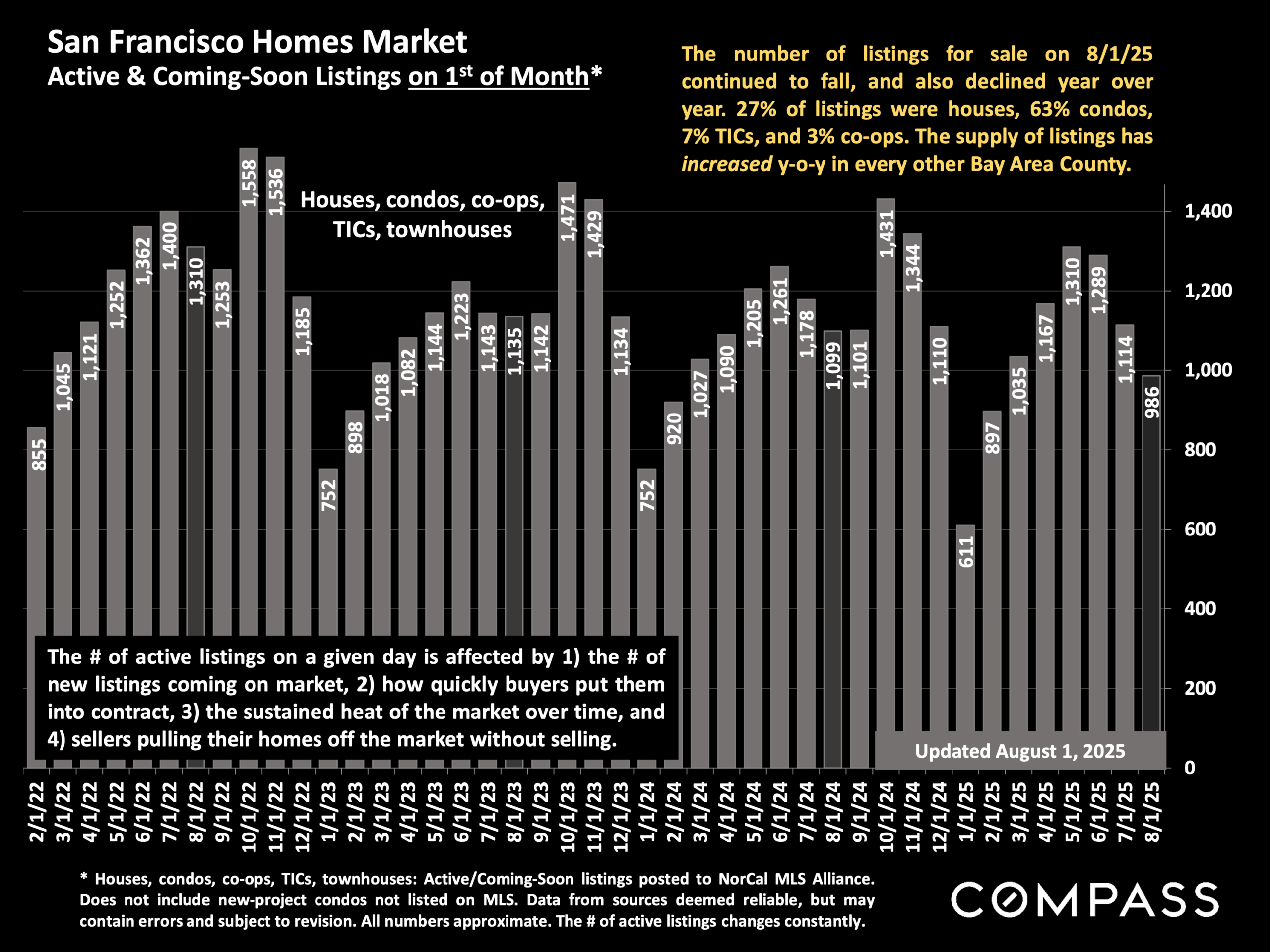 In our August Market Report, our whizz-bang market analyst, Patrick Carlisle, states that “Unlike most other markets, [SF’s] supply of listings is dropping, price reductions are declining, and home prices are starting to climb year-over-year.”